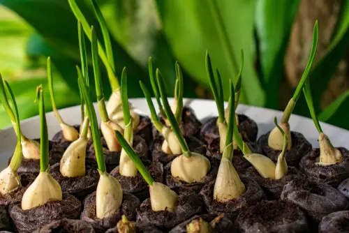 Garlic contains allicin, an active ingredient that acts as a natural insect repellent. Plant garlic cloves in a pot with good drainage, burying them about 10 cm deep with the pointed part facing up. Keep the soil moist to enjoy the insect-repelling benefits of garlic.