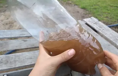 - Application: Transfer the brown liquid fertilizer into a watering can or bottle for easy application. You can now use this fertilizer to water your plants, providing them with the iron they need to thrive.
